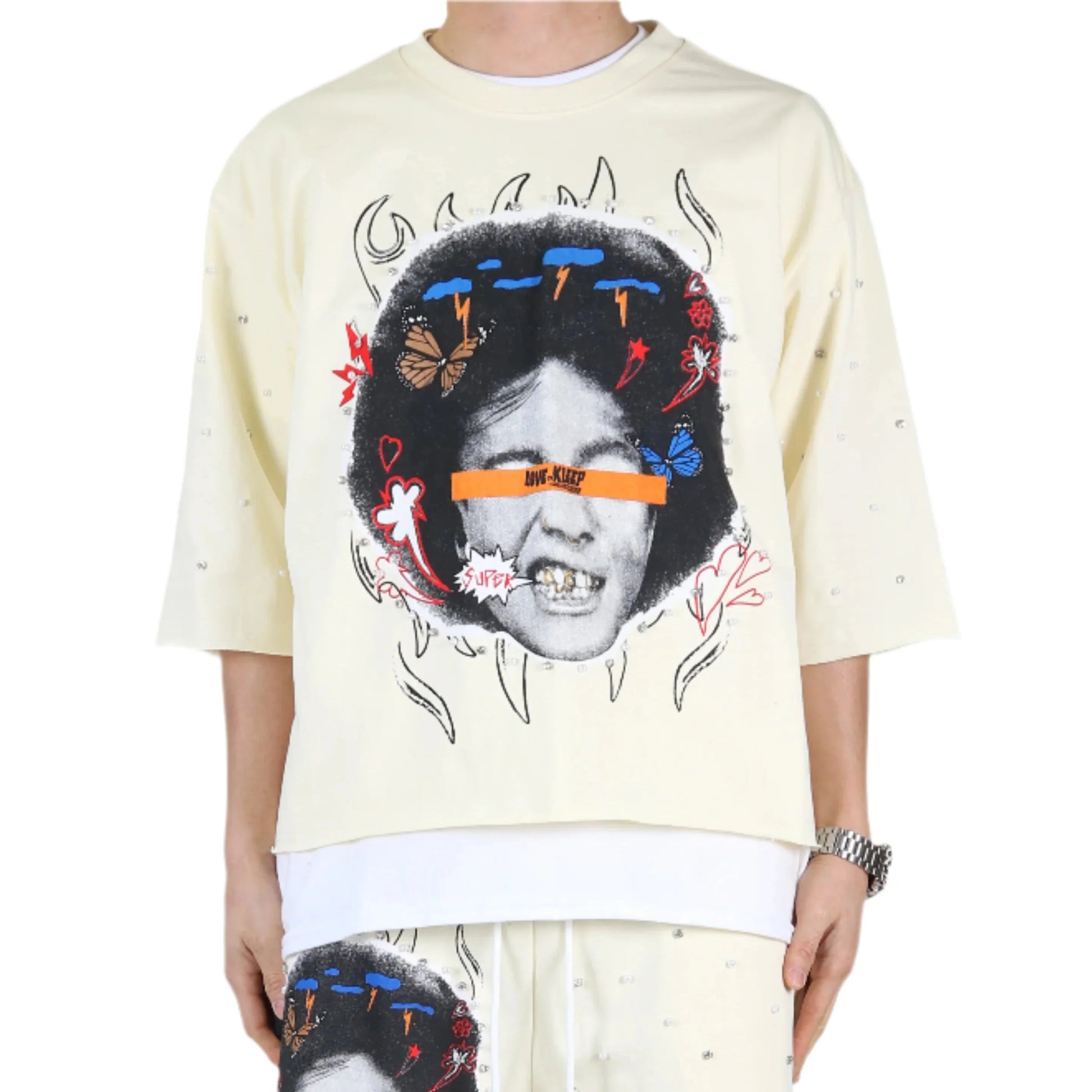 Face Artwork with Mixed Crystal Clear Stud & Stud on front & around the sleeve